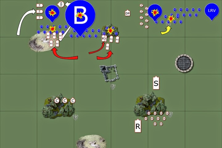 my scout moves, on the left flank, I moved the bikers forward towards the tanks