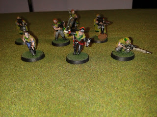 I hit ebay to pick up the beginnings of an army and one of my first purchases was the Gaunt's Ghosts squad and some Tanith troopers. When I started the army, these were no longer available from GW directly, so I probably paid more than I should have for them, but I had to own the models that got me collecting them in the first place. My initial plan was to use them as the command squad for my army; Gaunt as the commander and his unit as the command squad. In games these days they tend to be used as a veterans squad with sniper rifles. I would love to have collected an entire Tanith First and Only army, but my modelling skills are insufficient to kit out an entire guard army with camo cloaks.