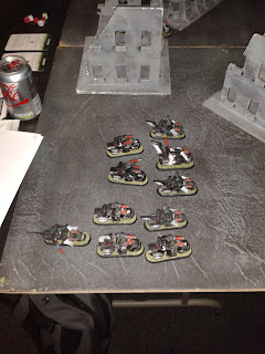 The bikers gunned their engines and advances on the Ork mob, the Grav gun squad moving up to claim the Relic in the centre of the board.