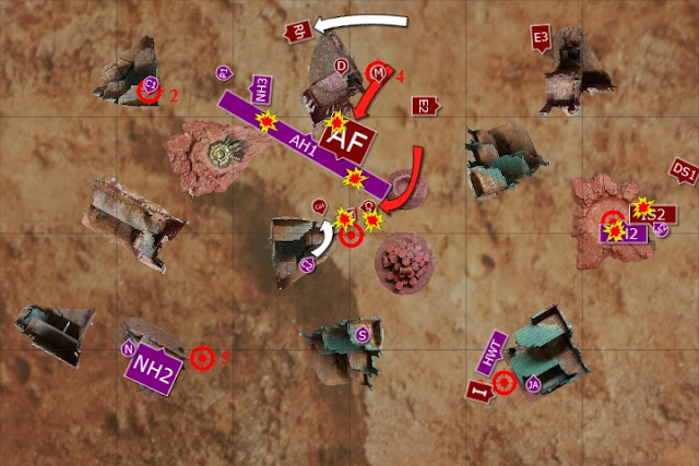 In the centre, the Mortar teams advanced to grab the objective to their right, while the Jackal Alphus fell back from combat.